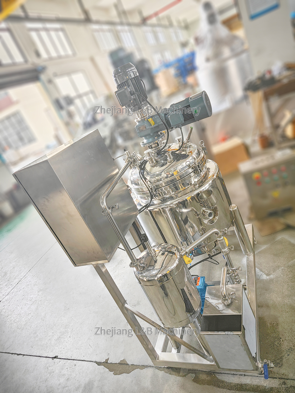 Optimize your production workflow with the Industrial Mixing Tank with Integrated Transfer Pump — a complete, self-contained system designed for seamless blending, holding, and automated discharge of liquids and semi-viscous products. Ideal for food, beverage, pharmaceutical, cosmetic, and chemical processing, this turnkey solution eliminates manual handling, reduces contamination risk, and boosts efficiency from mixing to downstream transfer.